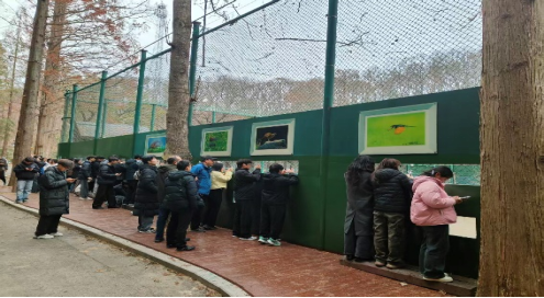 在学院老师的带领下,同学们首先抵达保护区内重要的朱鹮繁育基地。基地负责人为师生们做了详尽讲解,系统介绍了朱鹮这一珍稀鸟类的生态习性、种群历史、濒危状况以及在董寨保护区的重引入与繁育工作取得的显著成效。同学们近距离观察了朱鹮的生活状态,对珍稀物种保护的科学方法、技术手段及其重大生态意义有了直观而深刻地认识。
