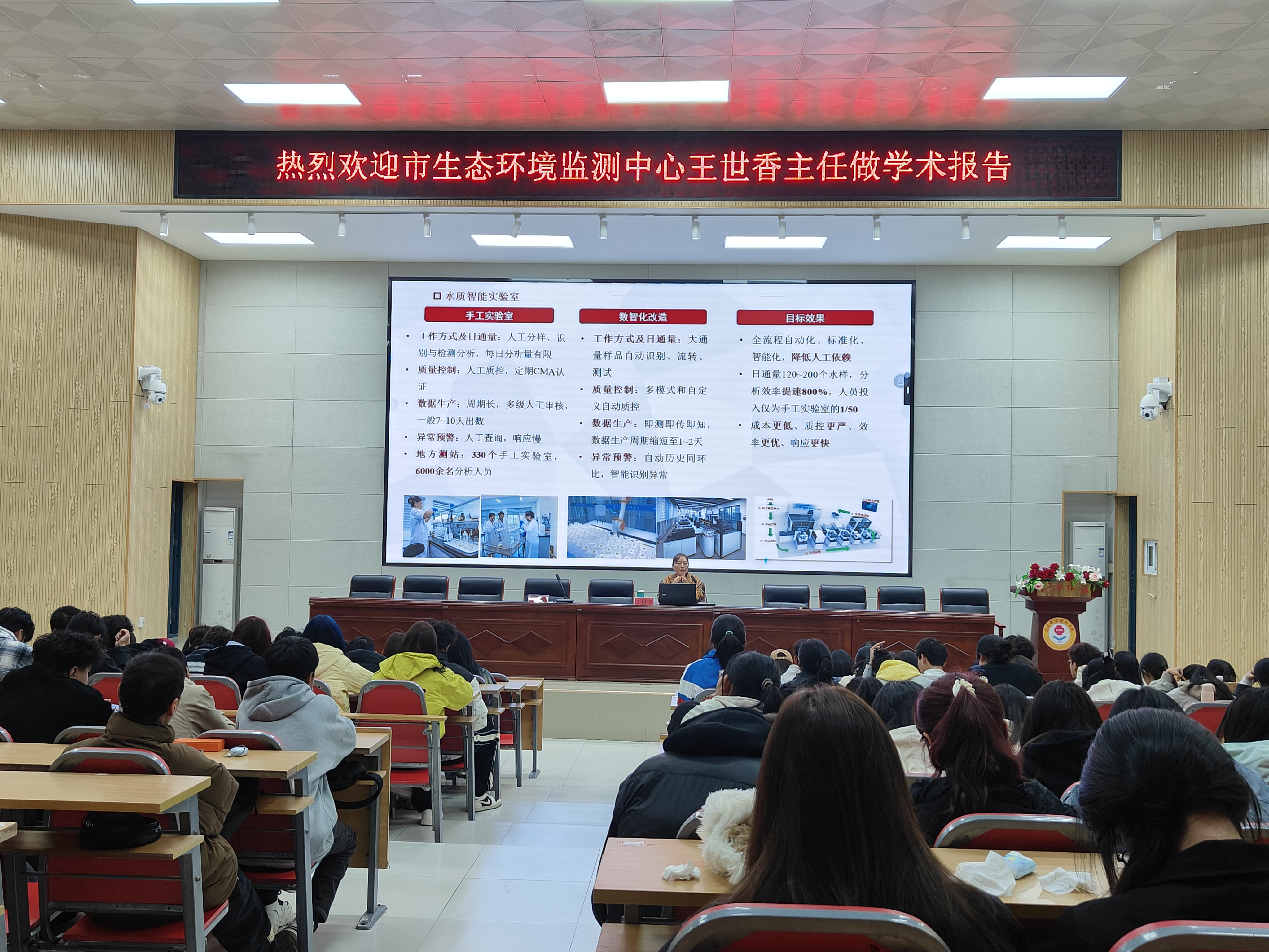 为增强学生对环境保护与监测领域的认识,拓展专业视野,信阳职业技术学院生态与环境学院特邀环境监测中心实验室主任王世香高级工程师,于10月24日来校作题为“生态环境保护与环境监测”的学术报告。生态与环境学院相关老师和全体学生共同聆听了此次报告。