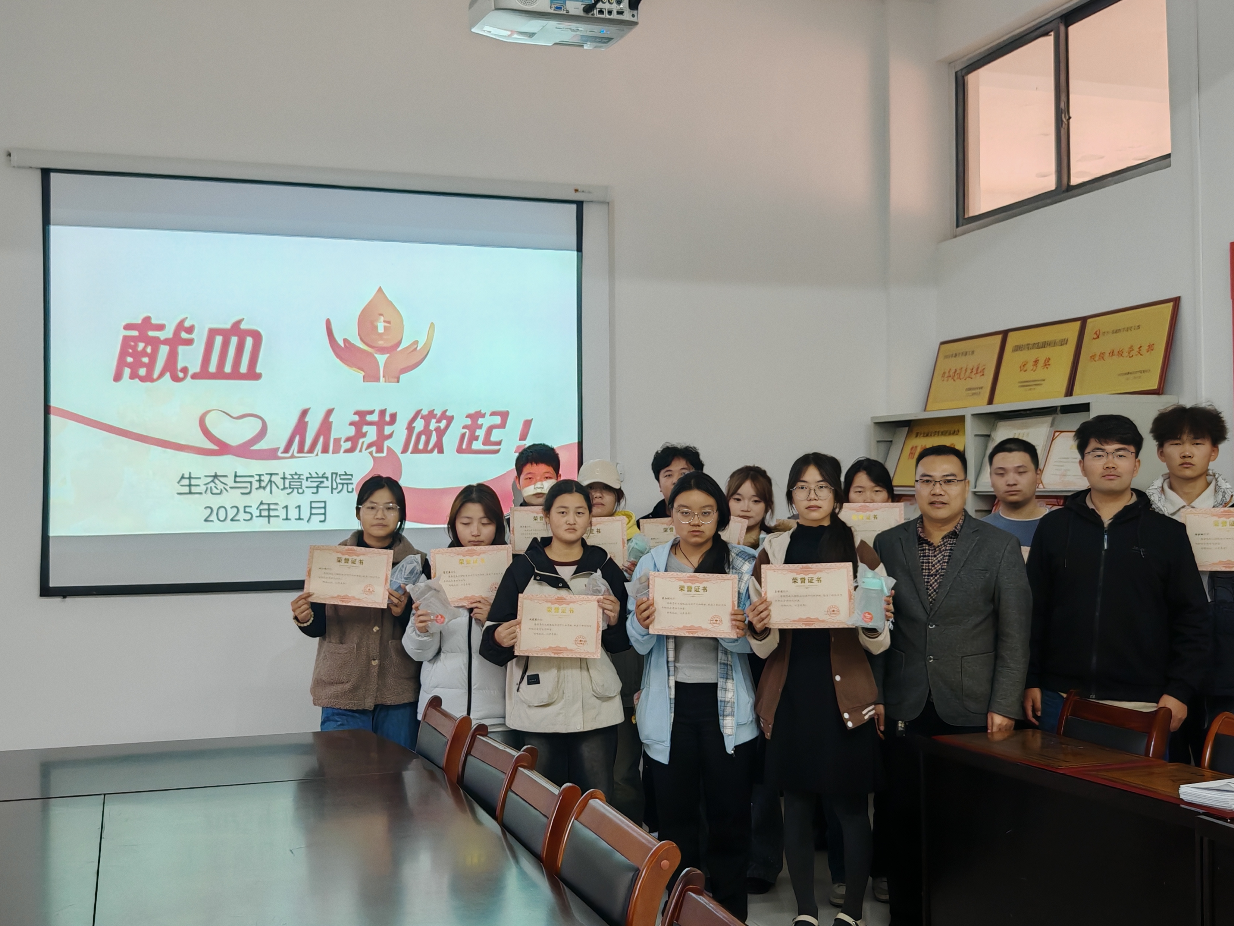 为弘扬 “人道、博爱、奉献” 的红十字精神,表彰同学们积极参与无偿献血公益事业的爱心善举,11月14日,生态与环境学院于4303会议室隆重举行无偿献血表彰慰问活动。活动旨在向踊跃参与献血的同学们,致以崇高敬意与亲切问候。